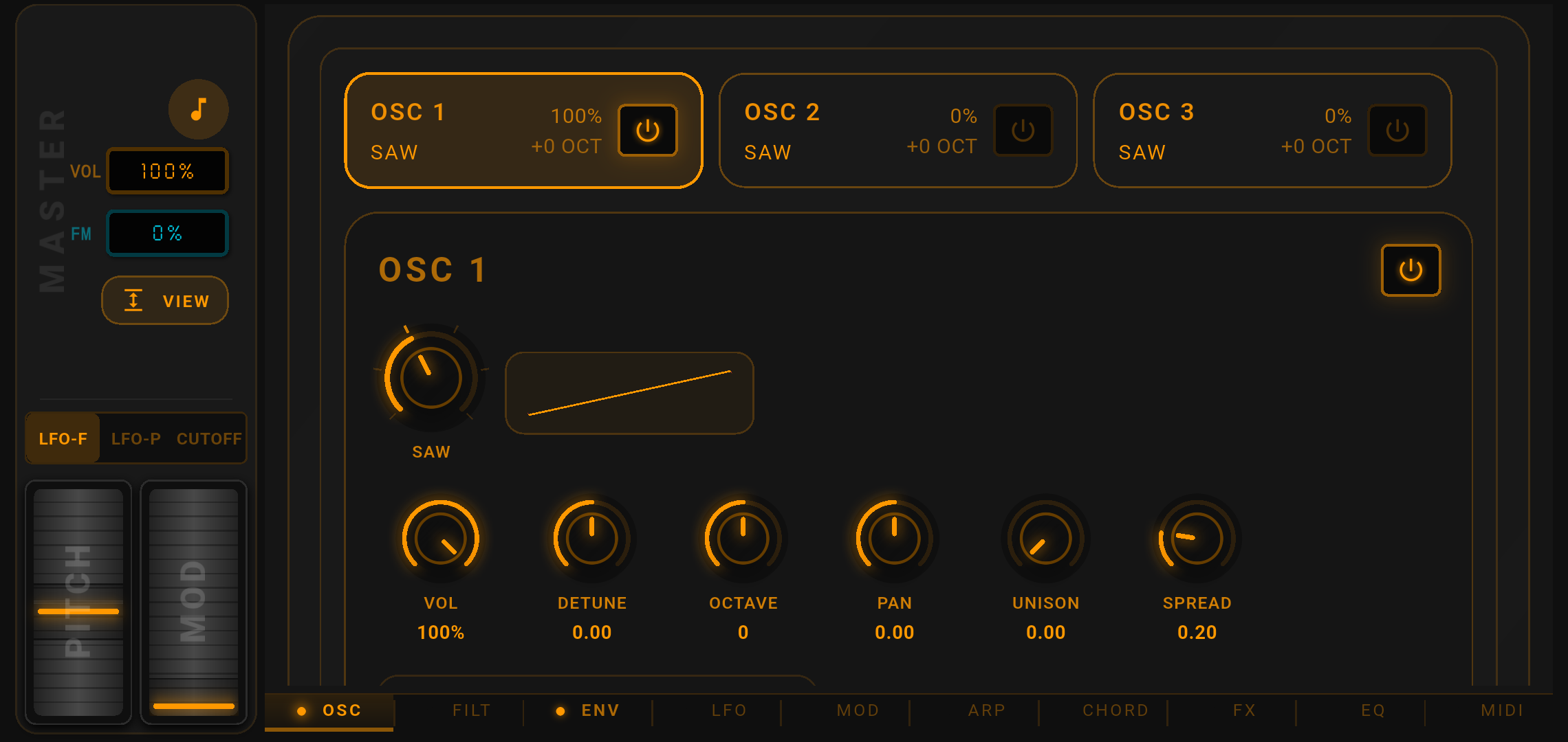 Turns ideas into sound instantly with three oscillators, fast envelope control, and performance-oriented routing.